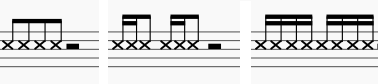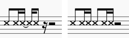 2-Click Flareは16分音符分短くして一拍半フレーズにしてつかわれることがよくあります。(<->を削除)