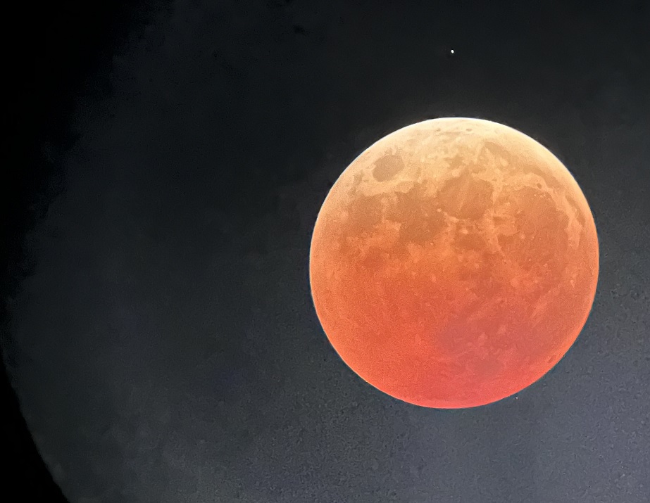 私も観測にいき天体望遠鏡のファインダーからですがiPhoneのレンズをくっつけて、思ったよりきれいに写真をとることができました。今回天気も良く長時間にわたって観測できたため、長く楽しむことができたのではないでしょうか。